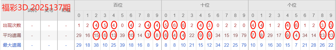 2025135期开奖号码458,我们可以看出近30期百位4出现4次,十位5出现3次(较136期减1),个位8出现3次。