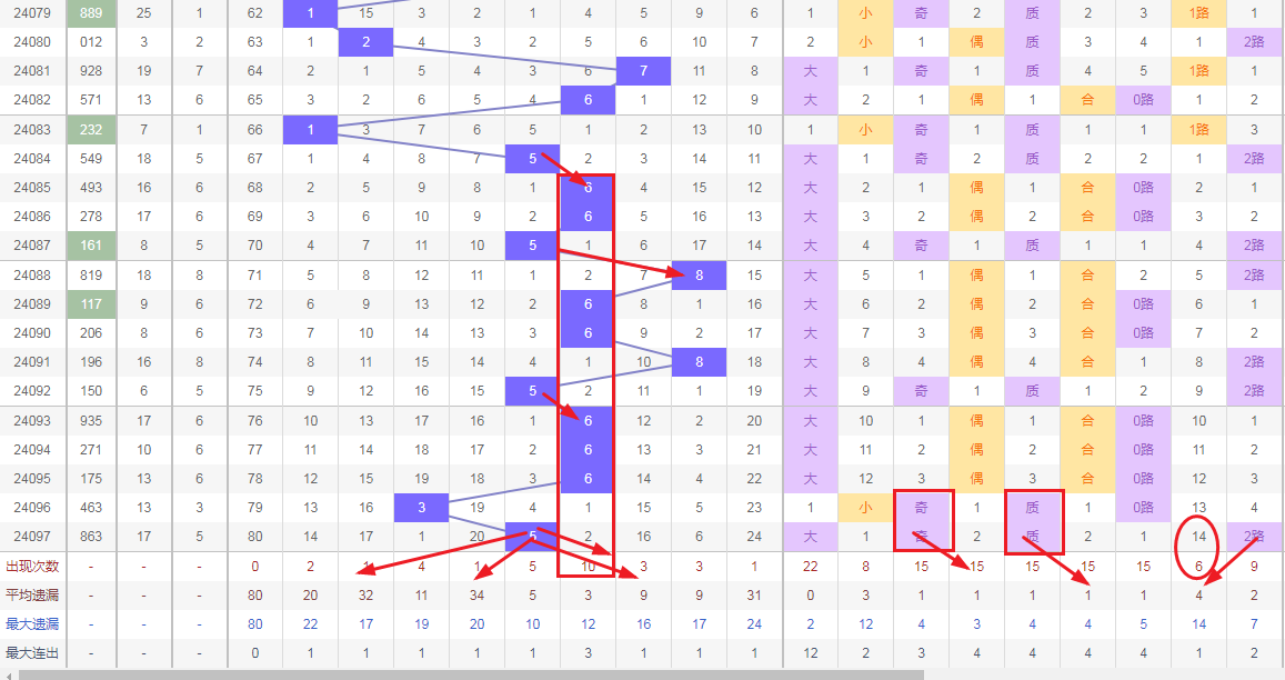 求均衡规律解释:求均衡是指如果某一个号码在一个区间长期不出现,总会在另一个期间进行回补。