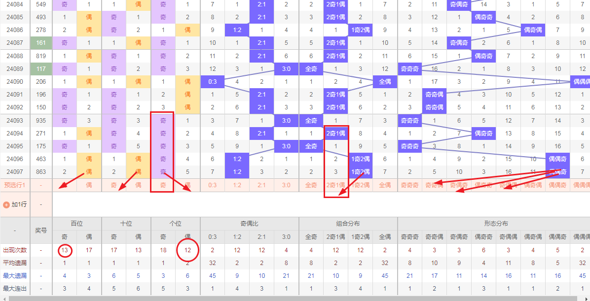 排列三 奇偶分析:从上图可以看出排列三100期内百位奇偶比为47比53,十位奇偶比为46比54,个位奇偶比为52比48十位的比值比较均衡,但是百位的比值偏差就有点大,历史奇偶形态近3期开出偶偶奇后下一期的走势为,第70期开出偶偶奇后第71期开奇偶奇, 第78期开出偶偶奇后第79期开偶奇偶, 第96期开出偶偶奇后第97期开偶偶奇直落。本期应该重点关注2奇1偶所以排列三第98期奇偶形态推荐奇奇偶.本文由一起彩作者钱是生命动力所著请勿抄袭