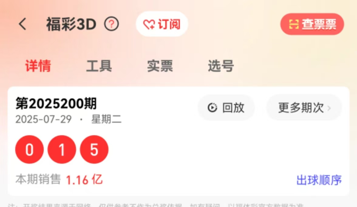 福彩3D2025第201期: