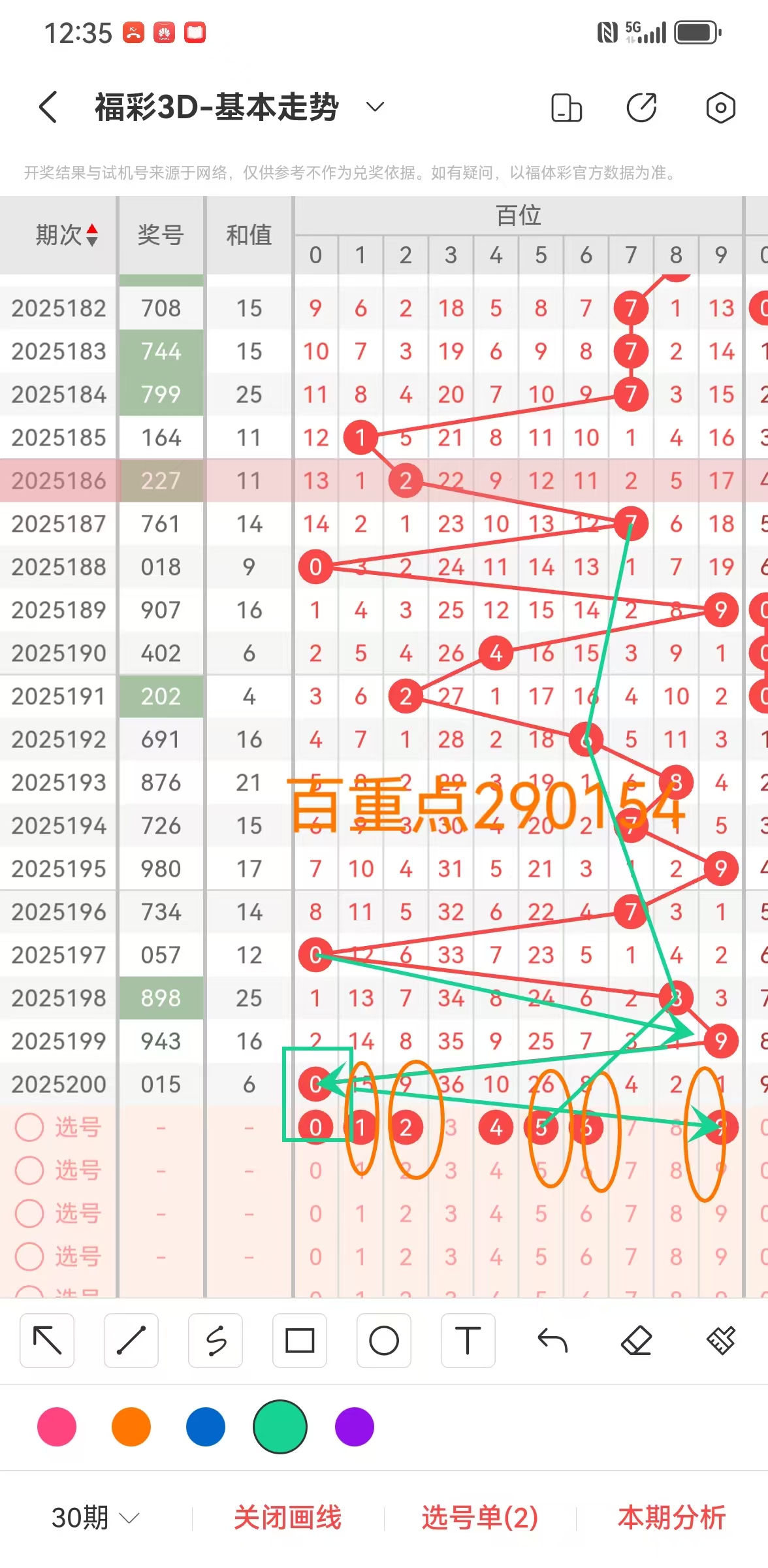 1、福彩3D第201期百位分析如下图:
