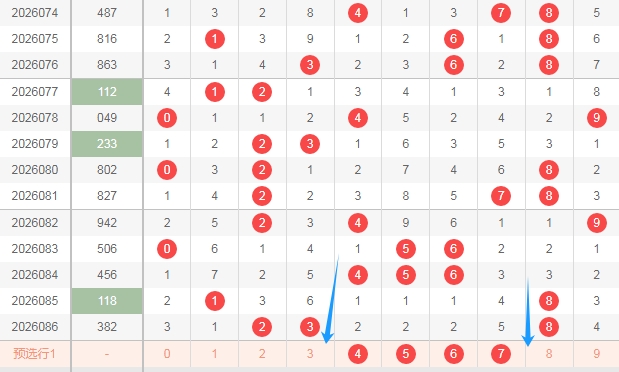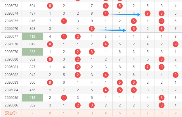 大家好,本人蔡楚门,一个玩彩十几年的老彩民,现在来本平台分享一下本人的对彩票的分析思路和看法,希望本人的文章能够给你们带来灵感和好的运气,首先感谢一起彩提供一个好的平台,下面走势图都是用一起彩平台的走势图,接下来分析一下福彩3D第2026087期号码思路。下面文章中名词解读,合数为0 4 6 8 9,质数1 2 3 5 7,奇数1 3 5 7 9,偶数0 2 4 6 8,1路球数字1 4 7,2路球数字2 5 8,,0路球数字0 3 6 9。下面分析是从左到右定位分析。