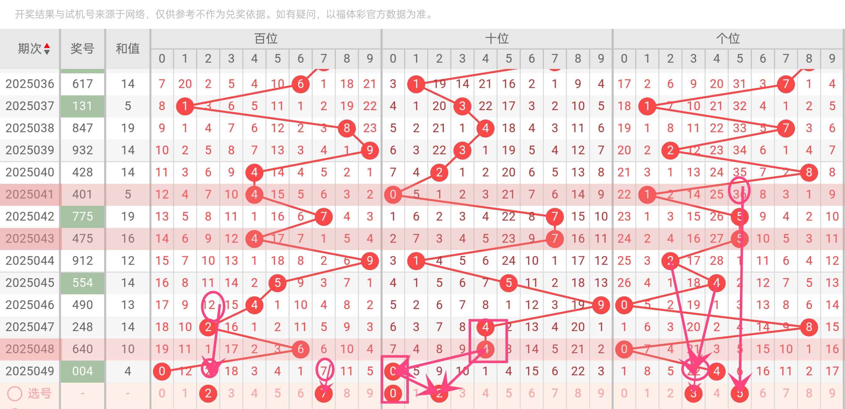 - 十位“3”:2025038期(8,4,7)、2025011期(5,1,8)显示其稳定性,十位“3”当前遗漏值仅3期。