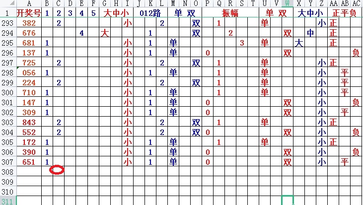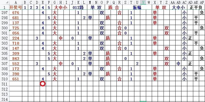 如上图56,大中小分析,中号3456出胆码,最低1个胆码,重点34
