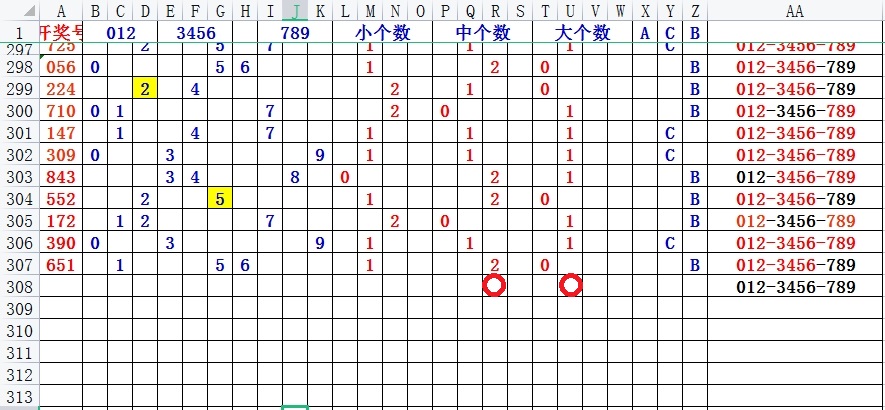 如上图56,012路分析。0路号出胆,0369中出,重点36胆码