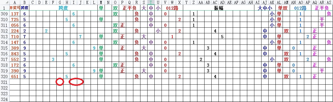 跨度:就是开奖号,最大数减去最小数所得的数,就是跨度。
