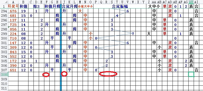 如上图3,和值升降平分析,和值升概率大,大于12和值。