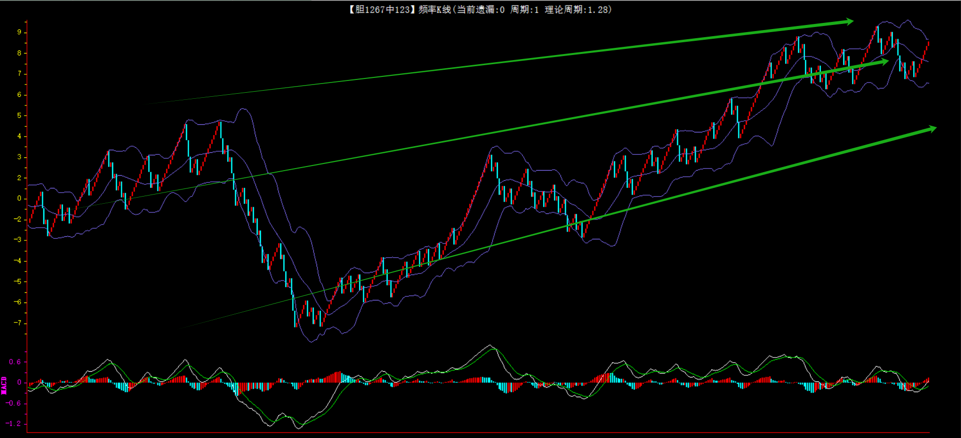 整体趋势上行,上边沿线趋势向上,下边沿趋势也是向上,节点震荡,当前连开8期,本期关注。