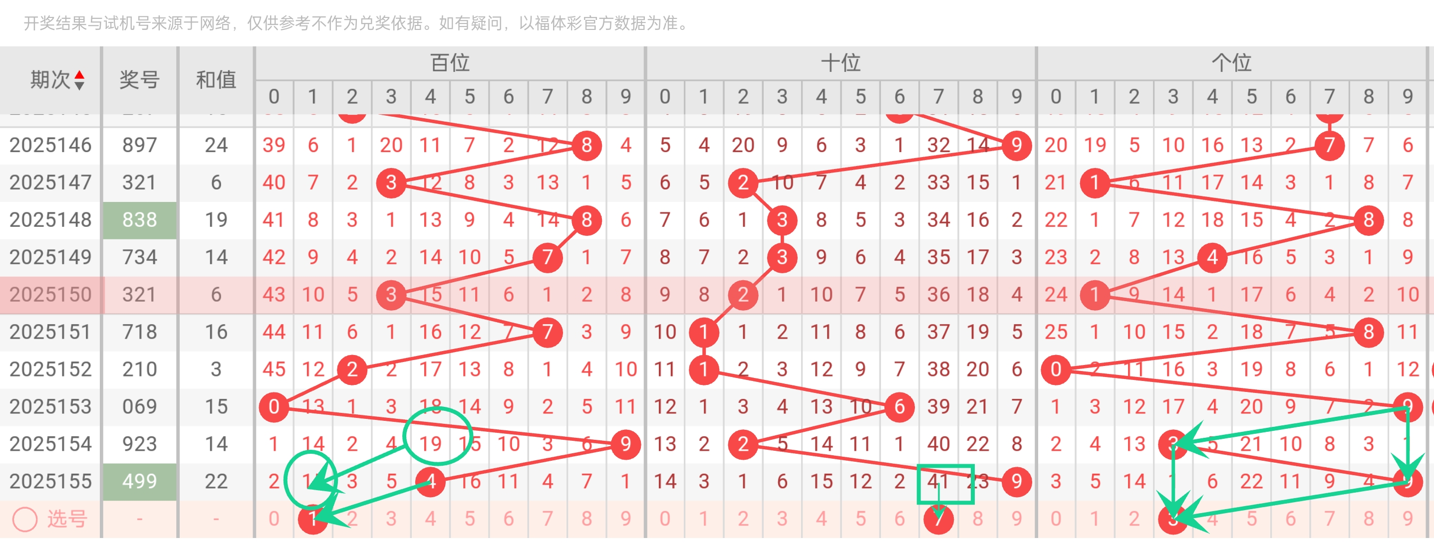 跨度和值关联: 历史统计显示,跨度值3与和值13同时出现的频率(近50期约58%)高于随机分布预期。然而,近期跨度3的出现频率不足其历史平均水平的一半,存在回补空间。若判断和值13可能回补,则需关注跨度3组合。