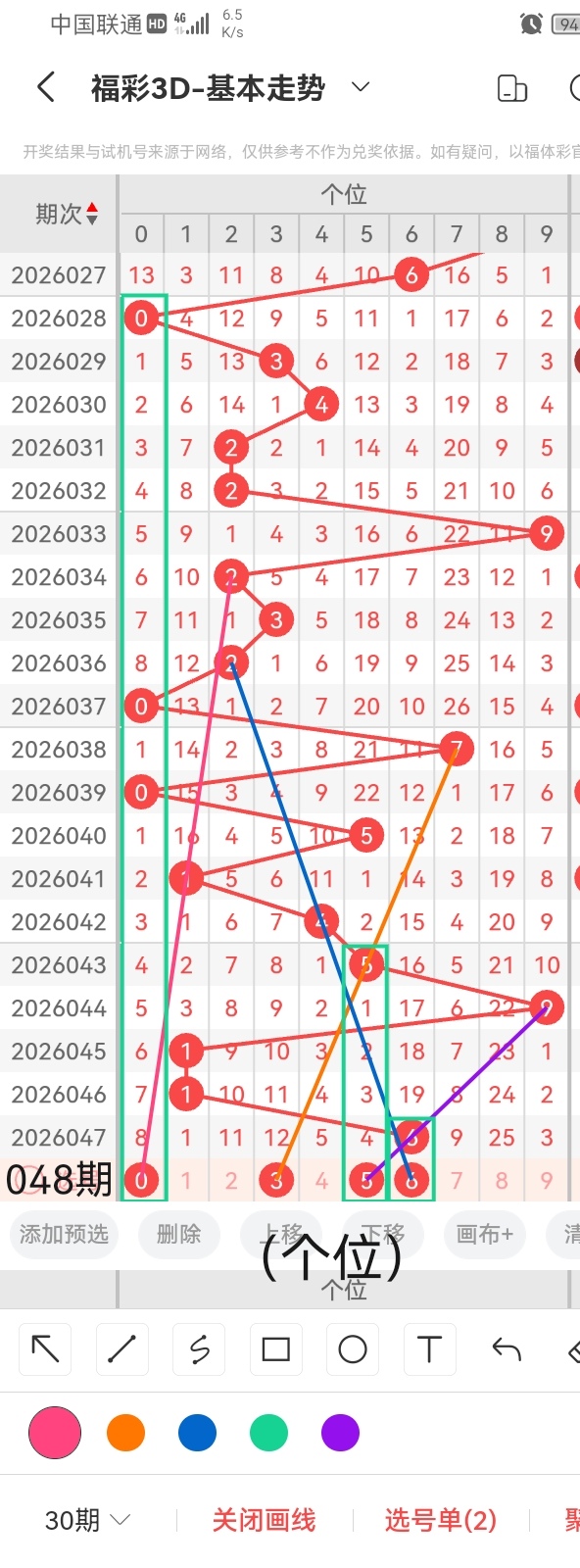 通过以上对上期的简单回顾,下面进入2026048期(下面简称本期)的选号分析: