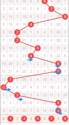 上图是福彩3D开奖号码从左到右定位第二位数字,我标注出来的蓝色小箭头是遗漏周期,上期开出数字2遗漏周期是19期,最近几期开出的数字遗漏周期都有点大,那么本期第二位数字可以关注遗漏周期小的数字0123468,个人最看好数字2468。