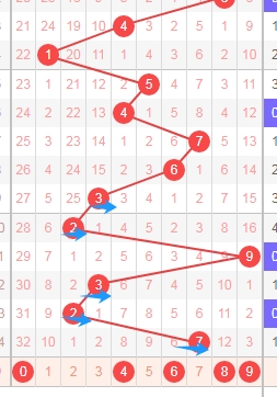 上图是福彩3D开奖号码从左到右定位第一位数字,我标注出来的蓝色小箭头是偶数,很明显最近开出的偶数多,那么本期第一位数字可以关注出奇数数字13579,个人最看好数字1579。