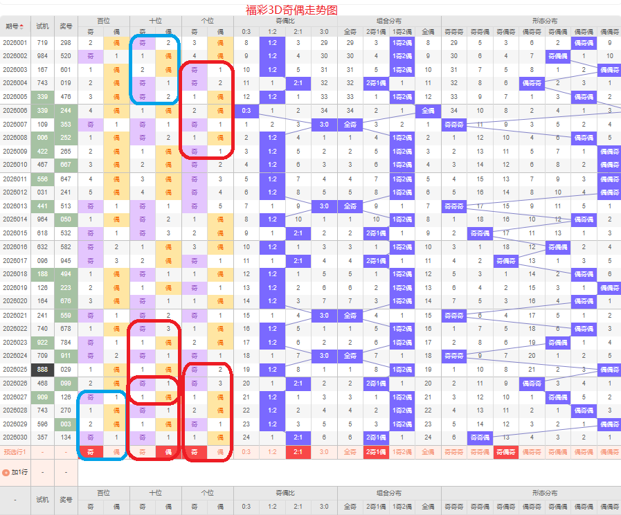 上期奇偶比是2:1,两奇的号码组合方式,从近五期的奇偶数出现情况看,奇数出现7次,偶数出现8次,奇数偶数号码出现较平均,本期侧重两奇的号码组合,侧重奇偶奇或奇偶偶的号码组合方式,根据奇偶形态做五码定位13579/02468/13579或13579/02468/02468