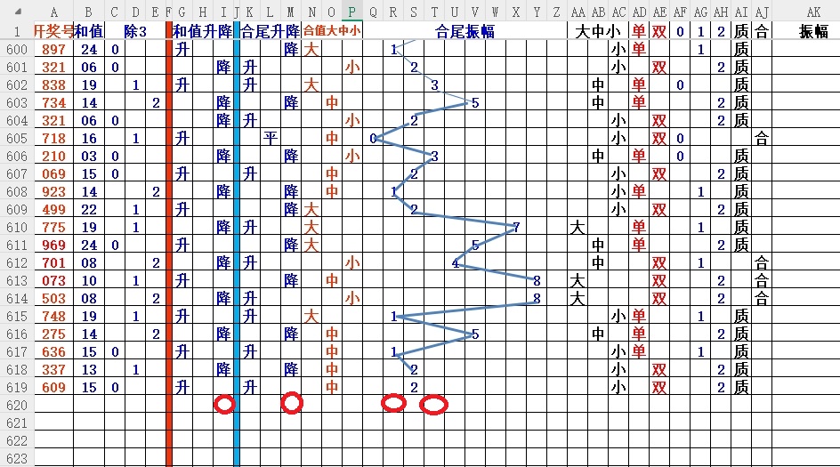 如上图3,和值升降平分析,和值升概率大,小于15和值