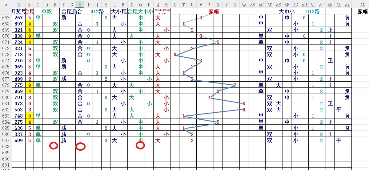 如上图2,012路分析,01路尾走比较好,关注0369147尾;