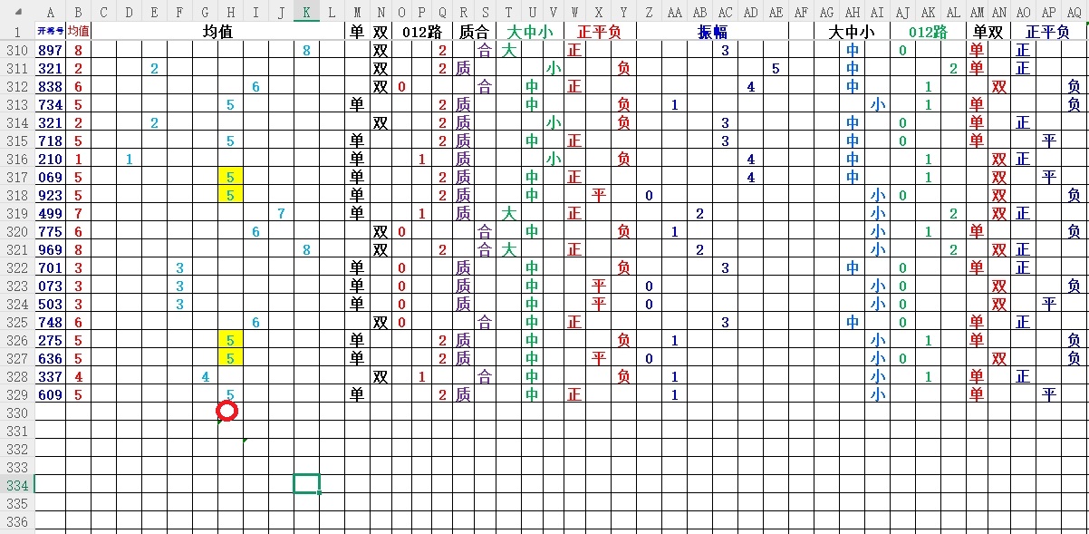 均值:就是开奖号每各数的总和除3,然后得到的余数,如果不够整除可以+1,-1,直到被整除得的数就是均值