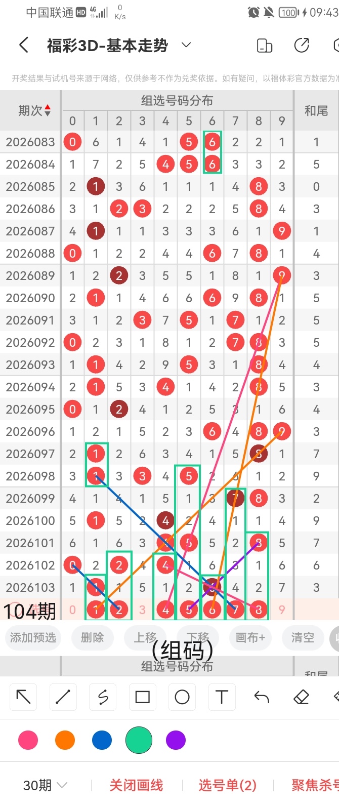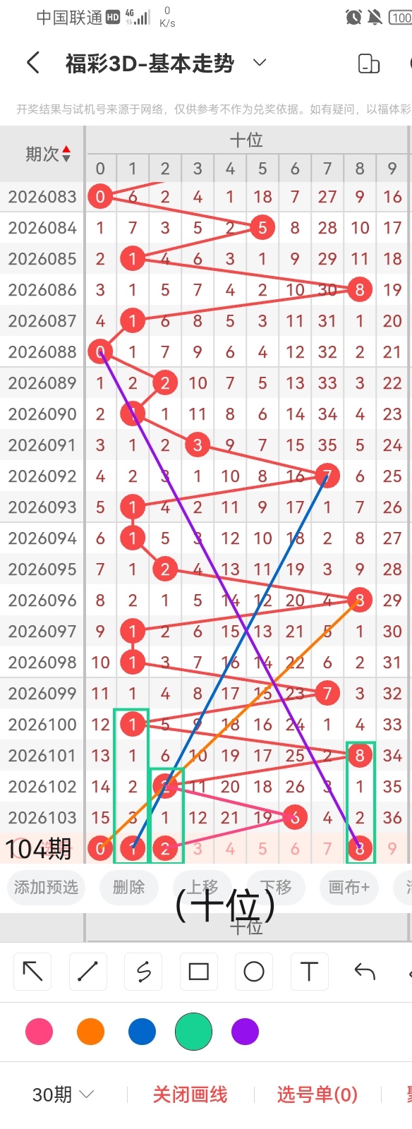 通过以上对上期的简单回顾,下面进入2026104期(下面简称本期)的选号分析: