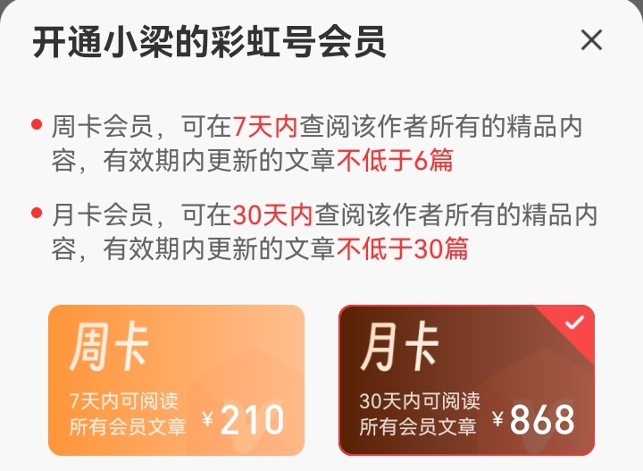 周卡(210元)可看7天,月卡(868元)畅享整月。开通后,每日推荐直接参考,助你节省时间、提高效率。