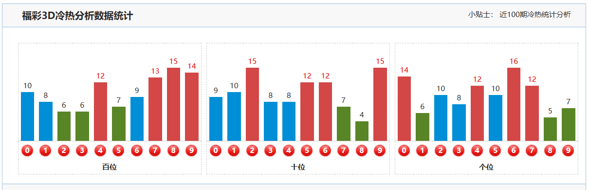 2. 十位分析:上期福彩3D的十位开出了号码1,这是一个小的奇数。从近期的开奖数据来看,十位号码在多个位置上频繁出现,表现出较强的活跃性。然而,值得注意的是,上期的十位号码振幅变化较大且下降趋势。本期在十位的分析中,我们预期该位会回补上升,即关注那些与上期相比数值有所增大的号码。因此,本期重点关注号码1、2、3、4、5、6、7、8