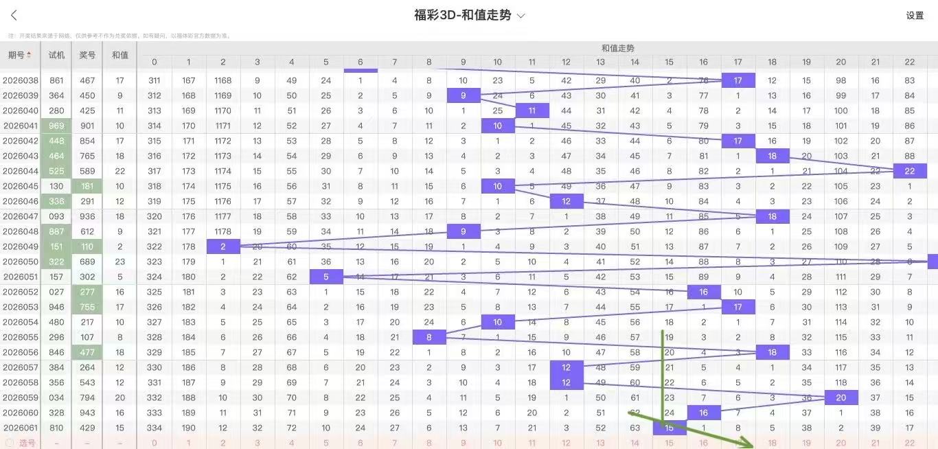 2026062期福彩3D和值走势图如下: