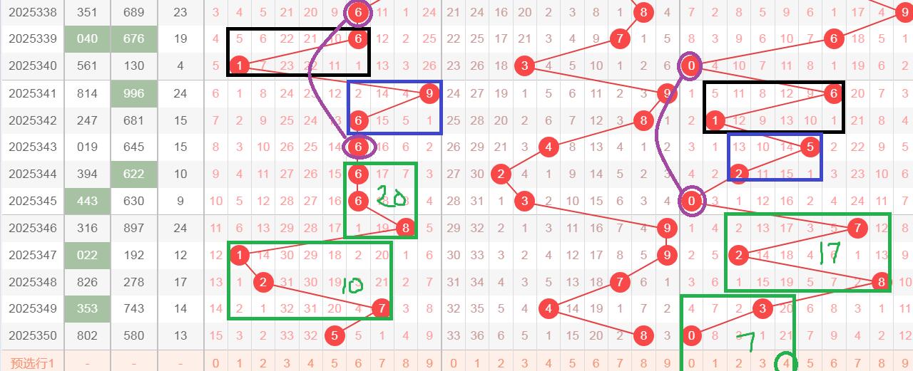 这是一张利用百位来分析个位的走势图,在百位开出了黑颜色框6和1,在个位同样开出了黑颜色框6和1,在百位开出了蓝颜色框9和6,两码差3,9和6由大到小的排列方式,在个位也同样开出了蓝颜色框5和2两码差3,5和2也是由大到小的排列方式,在百位开出了紫颜色线条66落号,66是两个偶数,在个位同样的也开出了紫颜色线条00落号,00也是两个偶数,在百位开出了两个绿颜色框,分别是668和127,668这三个数字相加等于0尾,127三个数相加也等于0尾,也就是说0尾对称0尾,在个位先开出了绿颜色框三个数字728,这三个数字相加等于7尾,那么下面的绿颜色框三个数字相加会不会等于7尾,推荐个位4,两码组合44,47,43,文字表达可能不太清楚,大家可以观看上面的视频