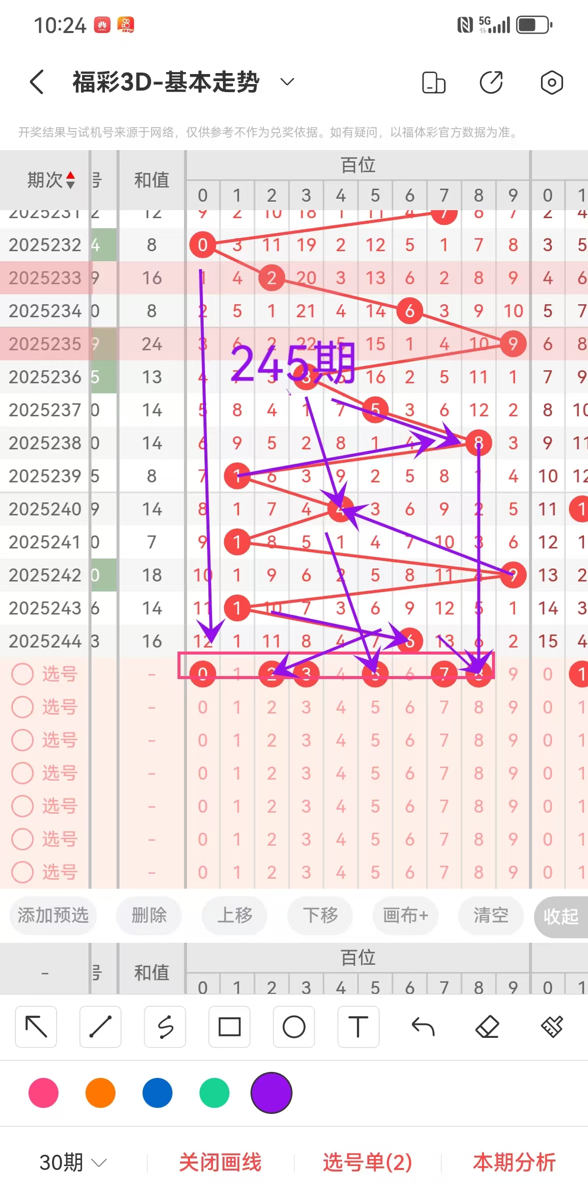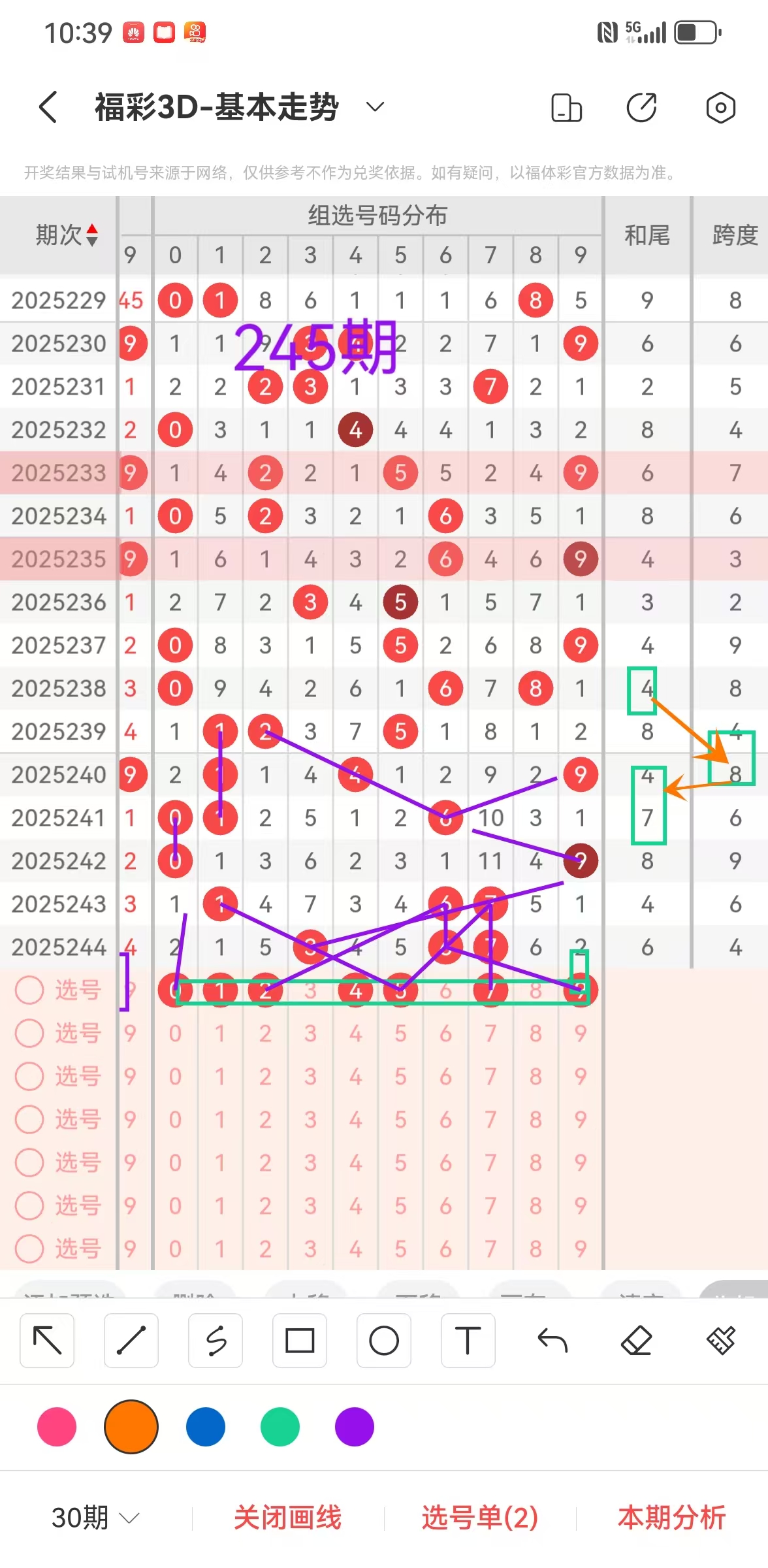以上分析数据为:福彩3D第245期,啤酒哥本人推理和18年购彩经验所得,助力您选号,不喜勿喷