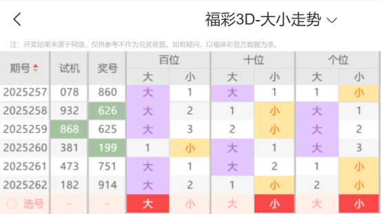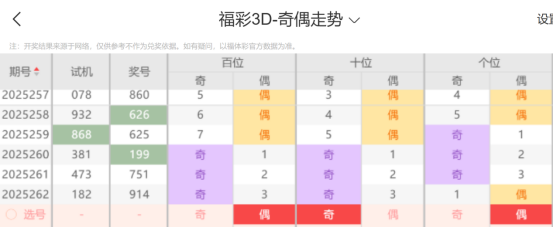 带着粉丝发大财福彩3D第25263期选号条件分析