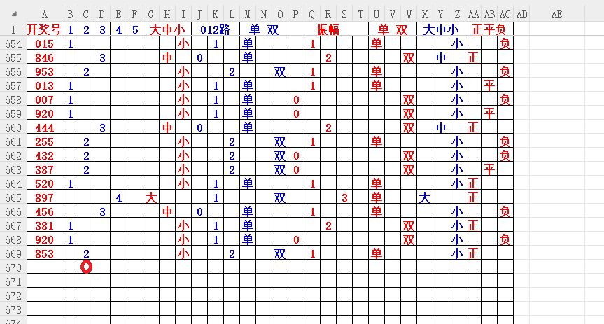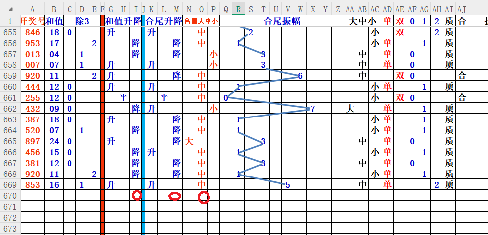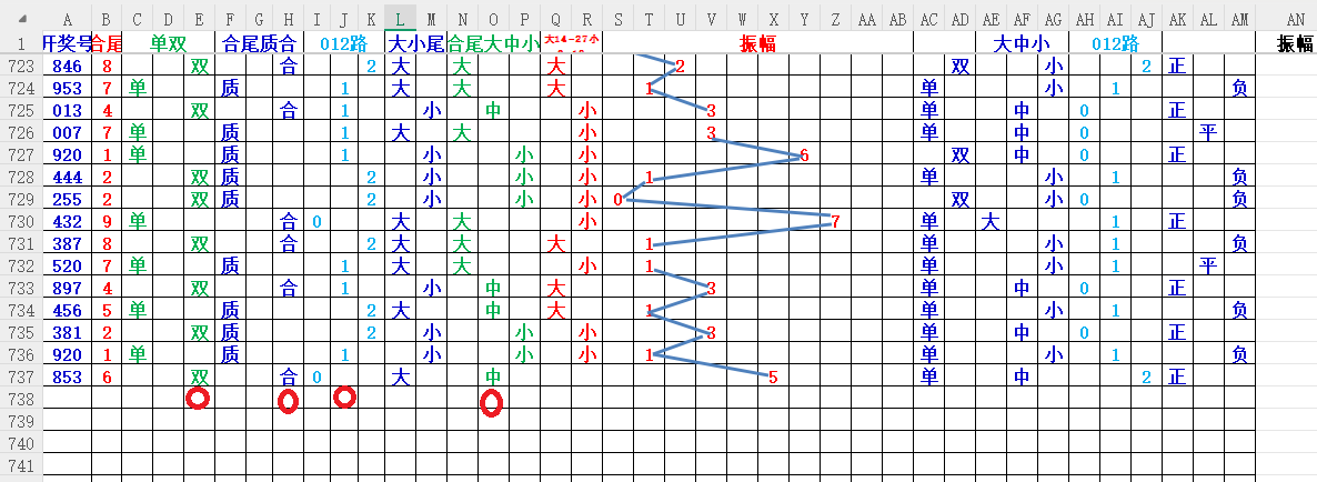 如上图2,012路分析,01路尾走比较好,关注0369147尾;