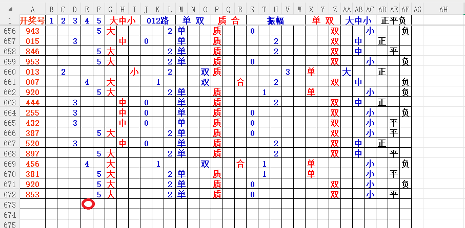 如上图56,大中小分析,中号3456出胆码,最低1个胆码,重点34