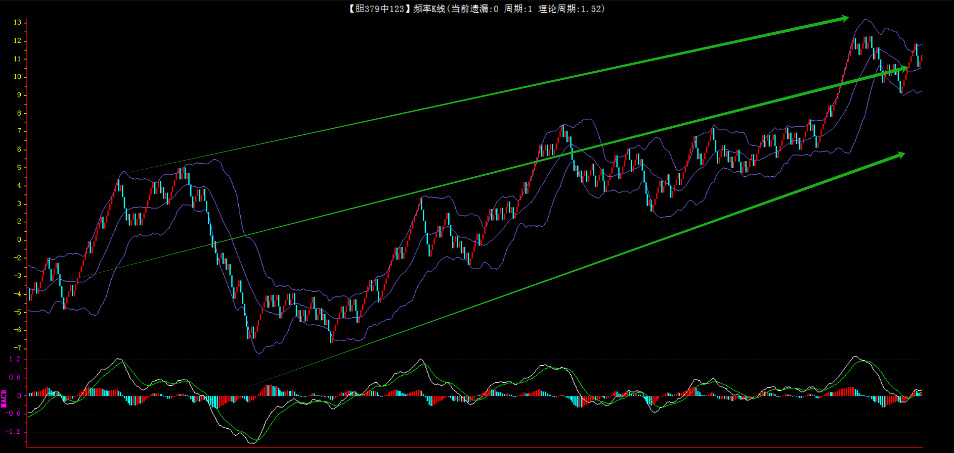 整体趋势上行,上边沿线趋势向上,下边沿趋势也是向上,节点震荡,当前连开2期,本期关注。