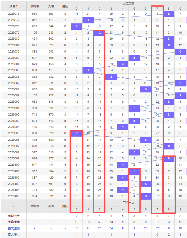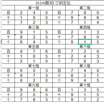 2026106期五码定位(百位、十位、个位):