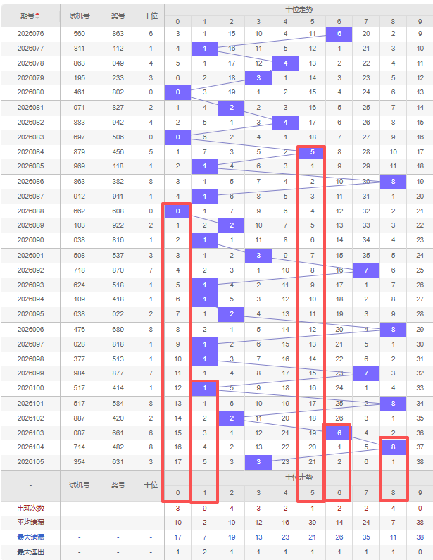 上期十位:3,近10期十位出号 :8 1 1 7 1 8 2 6 8 3,最近10期大小变化分别:大小小大小大小大大小,奇偶变化分别:偶奇奇奇奇偶偶偶偶奇,质合变化分别:合质质质质合质合合质,根据近10期的规律本期综上所述十位出号推荐5个号码:0 1 5 6 8。