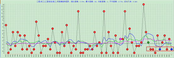上图是组三的遗漏图,图中显示组三目前到了密集落点遗漏1,这个点从遗漏图可以看出开出的频率很高,所以从遗漏图来看今天组三还是需要防守才行。这个点为什么还是只是防守而不是进攻,前面也已经说了很多次了,主要是组三目前整体还是处于一个下降趋势如下图: