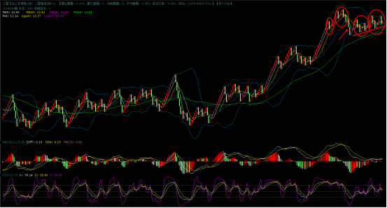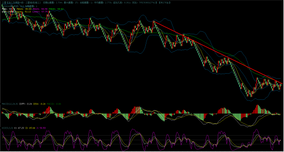 上图中组三的K线图可以看出整体还是走下行趋势,上方的压力线压的死死的,现在刚好又是在压力位附近,并且60均线现在也是处于压力位这个位置,今天的量能缩量了说明上攻动力不足了,同时布林中轨这个开出蓝格子没有突破上去,所以现在这个落点上攻的压力还是比较大,而前面遗漏图中又出现了密集落点,指标之间现在还是没有出现共振现象,所以组三还是只能作为防守即可。