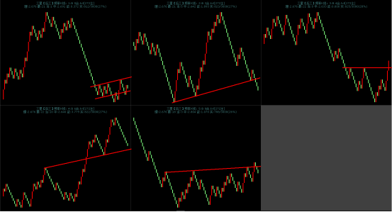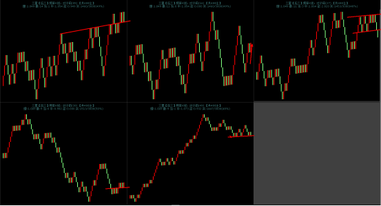 上图是对码的K线图同屏显示,对码0高位横盘走节奏,这样的走势不好判断基本靠蒙,对码1反弹图中出现一个蓝格子现在又开出红格子调整很迅速,继续上攻概率很大,对码2前期的节奏被打破继续回调概率比较大,对码3底部盘整走节奏,对码4现在处于支撑位附近,这个位置大概率还是会继续盘整,今天开红格子概率比较大,如果开蓝格子的话就直接破位了。对码胆不好看,就看012路,目前还是2路号走强,1路号今天已经连续4连阴了,今天1路号大概率会出。