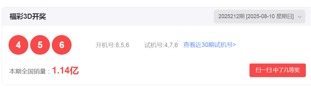 (一)福彩3D第2025212期开奖号码