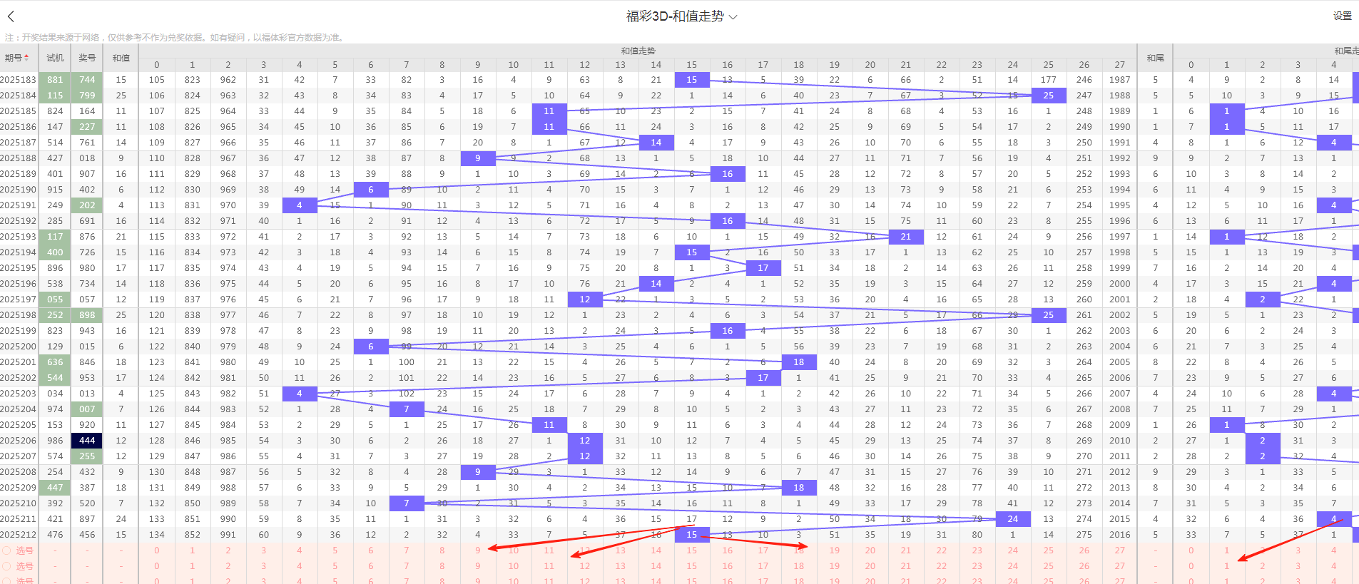 (三)和值走势汇总与分析