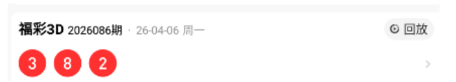 重号:上期有重号(085→086重8),下期可能继续重,重点关注086期的3、8、2中的至少一个。
