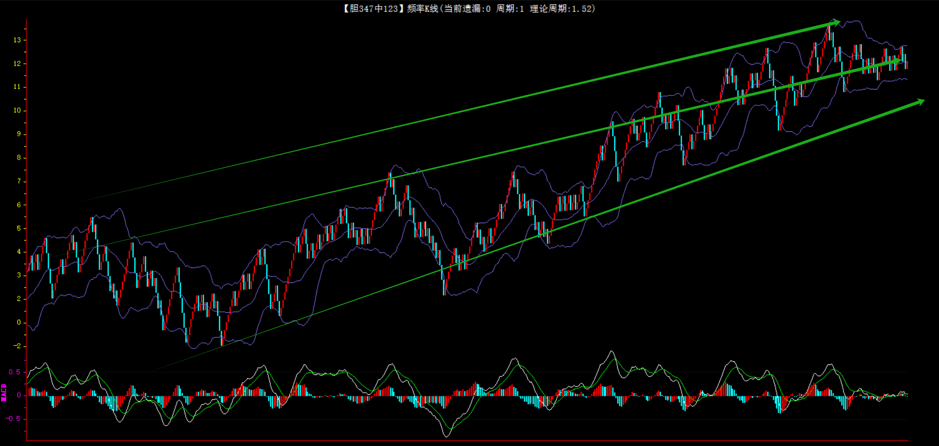 整体趋势上行,上边沿线趋势向上,下边沿趋势也是向上,节点震荡,当前开1期,本期关注。