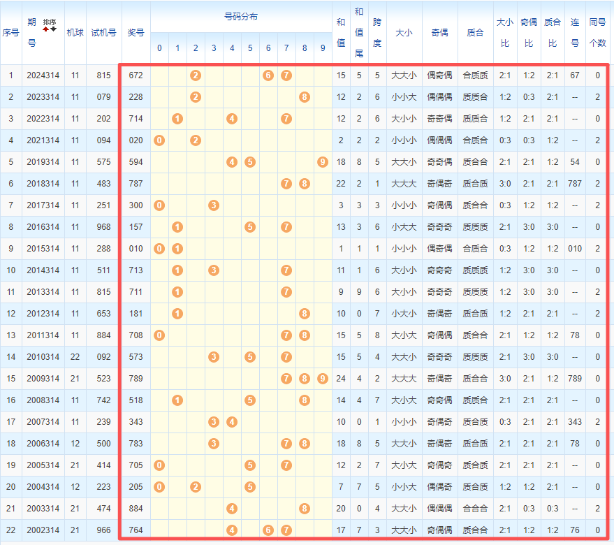 1、统计往年同期开奖号码