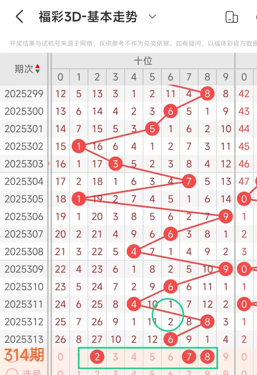 2、当十位开出6后下期开出:052929024247544,经统计0号出2次、1号出现0次、2号出现4次、3号出现0次、4号出现4次、5号出2次、6号出现0次、7号出现1次、8号出现0次、9号出现2次。观察发现02459号趋势好,本期可以考虑。