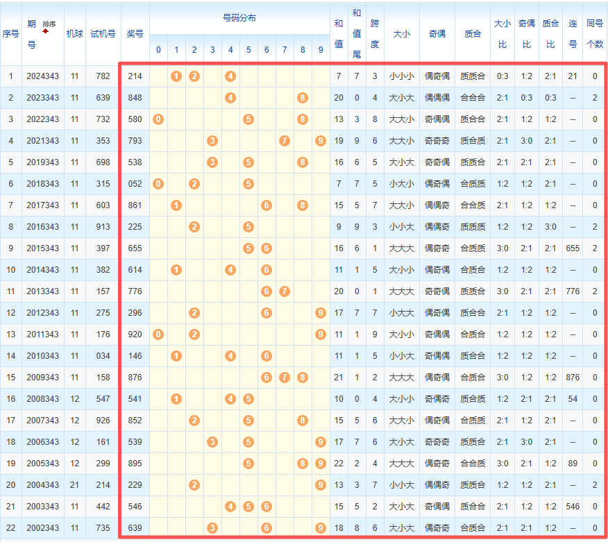 1、统计往年同期开奖号码
