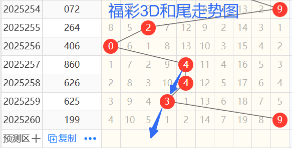 们依次是04439和尾,按照012路排序是01100路和尾,后面两期是同路,今天就是2路或1路的和尾,为什么这么讲呢,这个是个大概率的问题,也是根据长期的研究规律定的,准确率相当高,我定了2 1路的和尾,也就是258147和尾,那么我们再来看和值,按照和值除3余数的话,可以分为余0 1 2路. 那么我们来看256期和值10余1,257期和值14余2,258期和值14余2,259期和值13余1,260期和值19余1,那么本期和值看余0余2,根据上面的和尾那么就只有11 14 17 12 15 18 和值