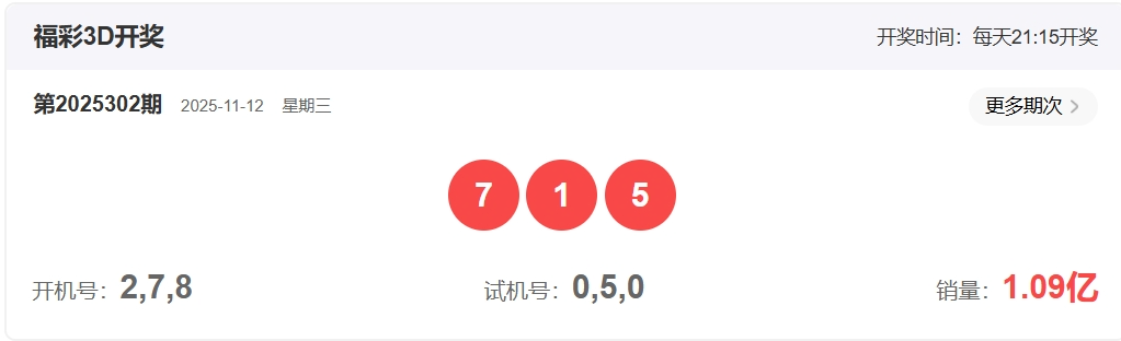 福彩3D第2025302期开奖715