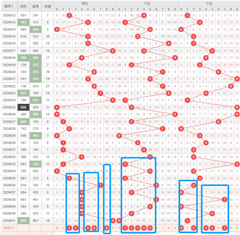 百位:百位开号上期开出了9号球,往前一期开的是4号球,上期的振幅为5,振幅变大,本期比较看好振幅变小;从开号位置来看,本期看好中间的号码;从012路走势来看,上期开了0路,本期看好2路,其次是0路;从奇偶数来看,上期虽然奇数回补,本期比较看好偶数;