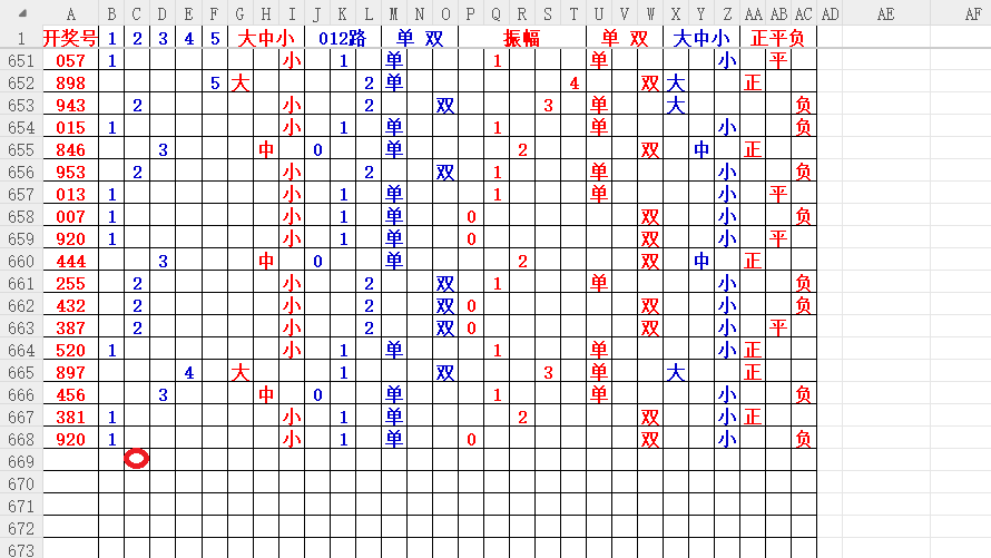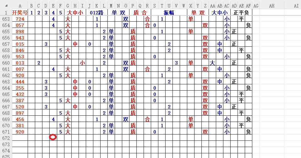 如上图56,大中小分析,中号3456出胆码,最低1个胆码,重点34