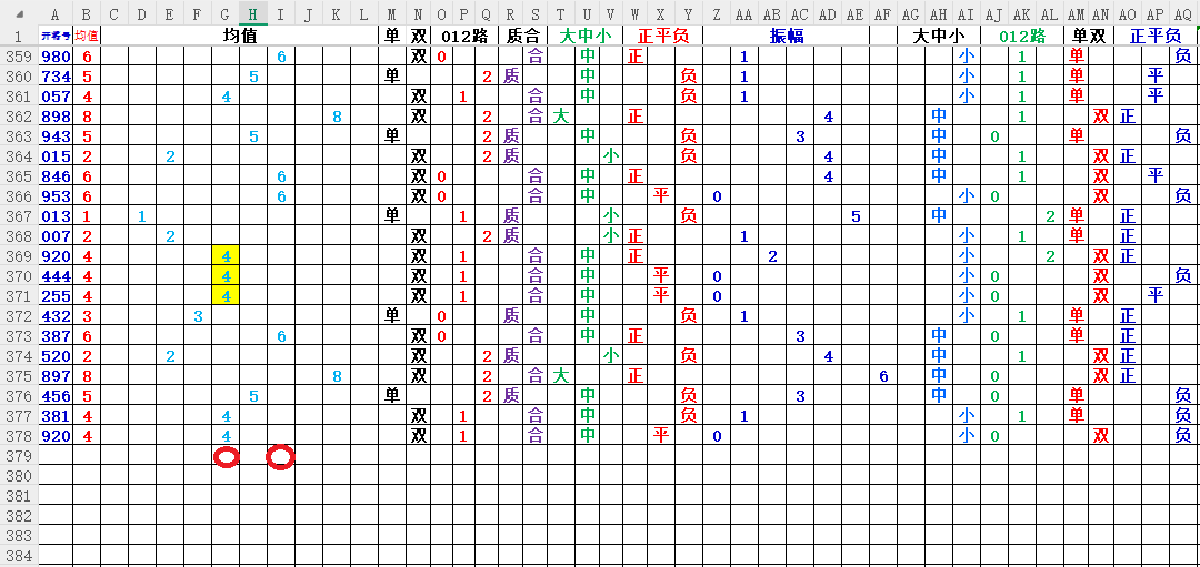 均值:就是开奖号每各数的总和除3,然后得到的余数,如果不够整除可以+1,-1,直到被整除得的数就是均值