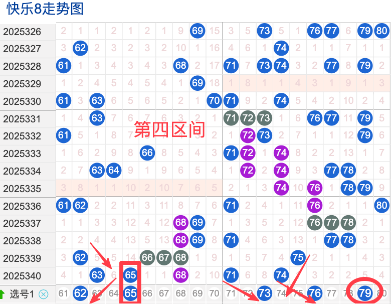 上期四区间开出了5奖号(63.65.68.71.74)上期的四区开5个奖号呈现了一个不变的趋势,开出的奖号7头回补2个,6头回补3个,先来看号码62在近 30 期内属于还是很稳定的号码,近期出现频率相对也是稳定的,偶尔会间隔多期后出现一次,这个号码要注意防守,号码65具有一定的间歇性活跃度较温冷比如有时会间隔 7到10期就再次出现,也有时会间隔多期,近期整体出现频率比较冷,近期还是要关注的.号码76活跃度近期比较热,有一定的间歇性。活跃度近期较热,整体走势有一定的波动性.