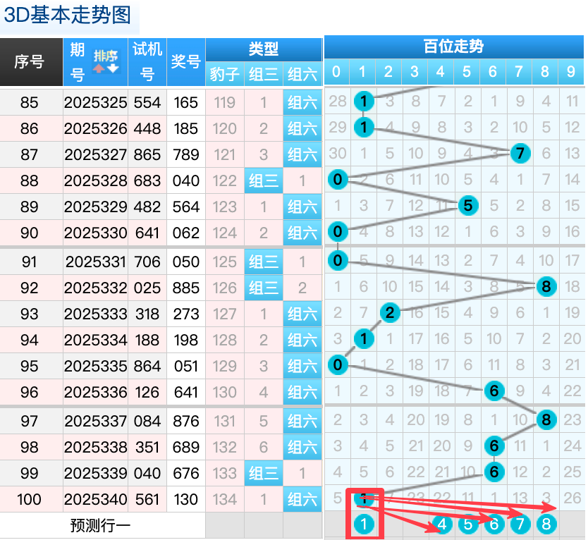 3D上期百位开出的1号球,这个奖号是一个热码的回补落位趋势也是一个比较好的符合百位上的落位点,先来看6号球这里还是有机会继续走出一个折返的趋势也是一个小周期的回补号码,还有一个就是0号球和1号球这里的号码落位形态的概率在这里的机会还是很好的要注意防守,然后9号球这里要注意也是一个大冷号的间隔26期回补码落位趋势要注意防守,0号球在百位上要注意可能有机会走出分边码回补的落位注意防守 。