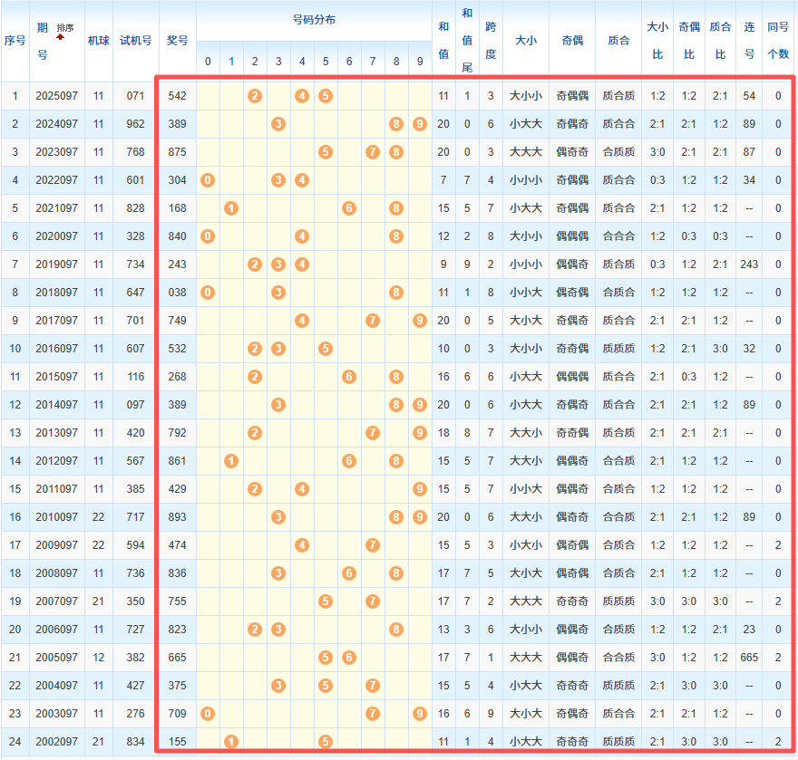 1、统计往年同期开奖号码